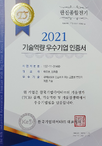 인증서 2021 기술역량 우수기업 인증서 작성자 관리자 작성일 2021-01-11 02:15 조회 560 좋아요 0 싫어요 0 인쇄 « 효율관리자재신고확인서 목록보기 답글쓰기 Powered by KBoard